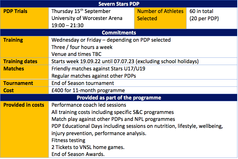 Severn Stars Player Development Programme (PDP)