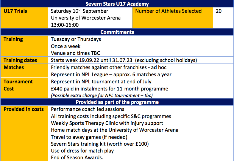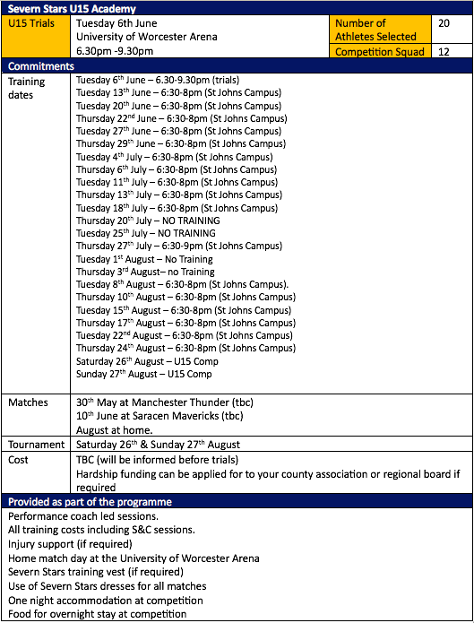 - You are currently in a Severn Stars U17 or PDP squad